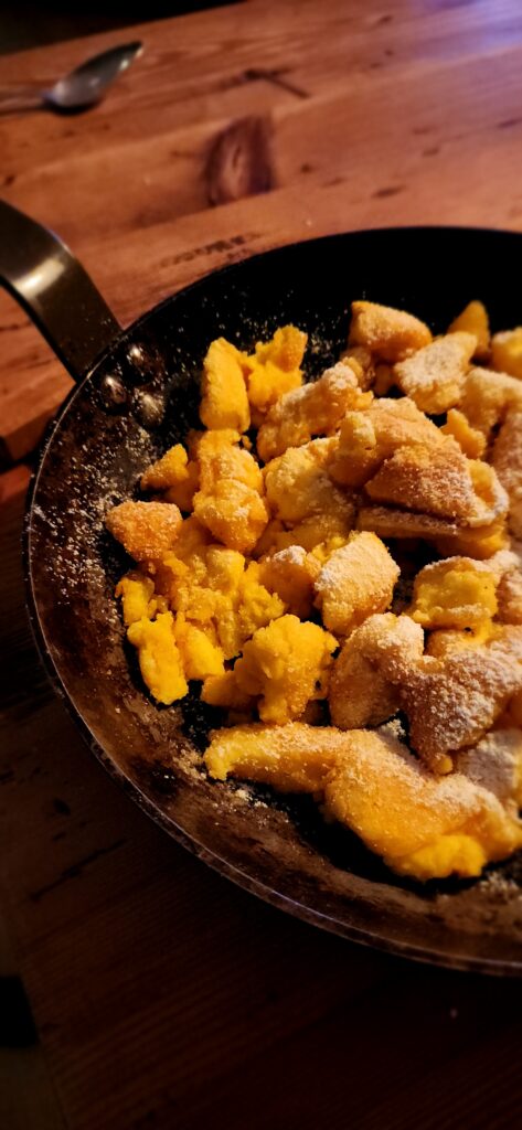 Ich hab schon viele Rezepte ausprobiert. Auch mal mit Backpulver, Puddingpulver oder die Eier einfach mit allem verrührt. Aber als ich bei einer guten Freundin und ehemaligen Arbeitskollegin auf einem Kochgeburtstag war, hat uns der Koch Timo ein einfaches und perfektes Rezept gezeigt. Was aber überhaupt nicht meins ist, sind Rosinen im Kaiserschmarrn.